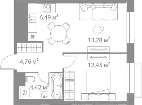 24 299 928 ₽2-к.квартира, 43.76 м², 5 эт.