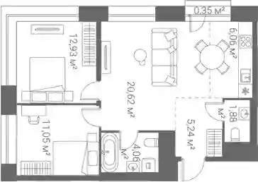 23 106 495 ₽2-к.квартира, 40.01 м², 4 эт.
