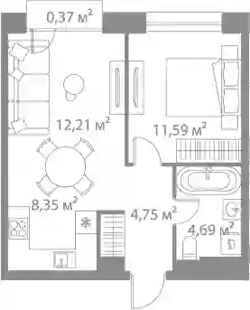 24 307 416 ₽2-к.квартира, 42.84 м², 2 эт.