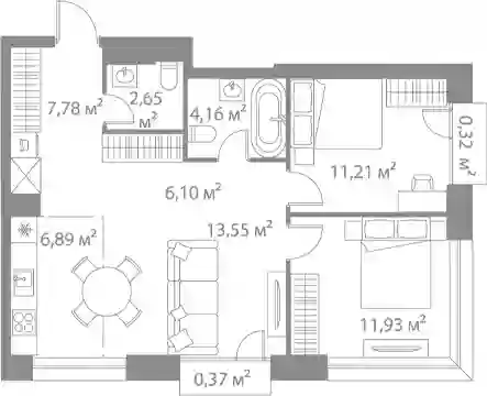 25 706 664 ₽3-к.квартира, 57.11 м², 8 эт.