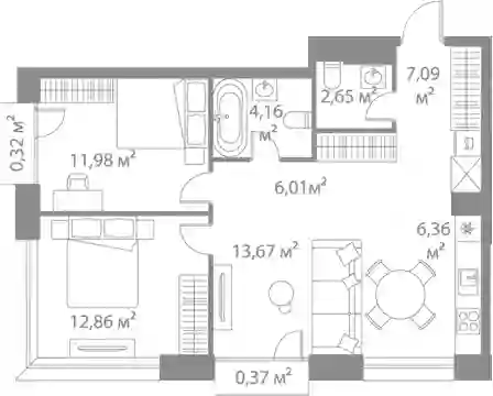 25 706 664 ₽3-к.квартира, 57.11 м², 8 эт.