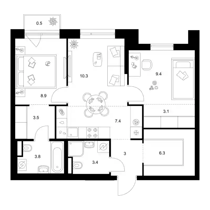 2-к.квартира, 59.1 м², 6 эт. в ЖК Лосиноостровский парк Корпус 2.3