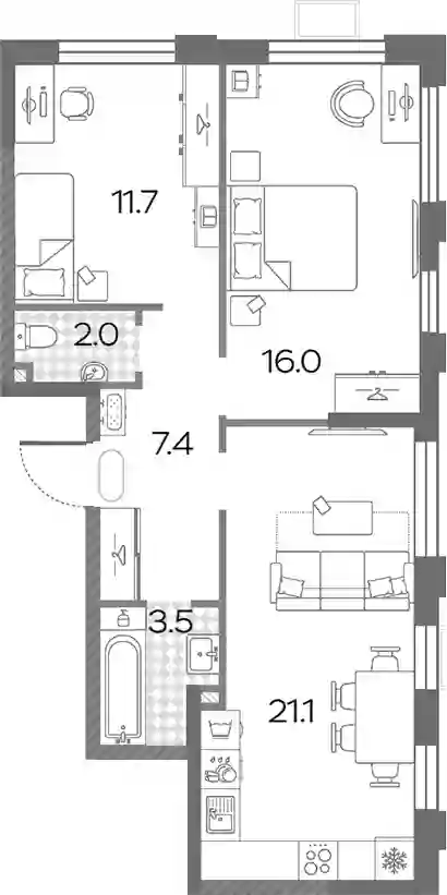 21 507 084 ₽3-к.квартира, 60.5 м², 21 эт.