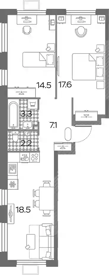 В комплексе «Дмитровское небо»предложено множество планировочных решений: в наличии квартиры, как классического типа, так и европланировки. Сдаются они без стен, высотой потолков 2,7 метра и увеличенными окнами.