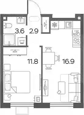 16 361 397 ₽2-к.квартира, 38.1 м², 24 эт.