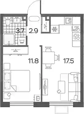 17 364 262 ₽2-к.квартира, 37.5 м², 20 эт.
