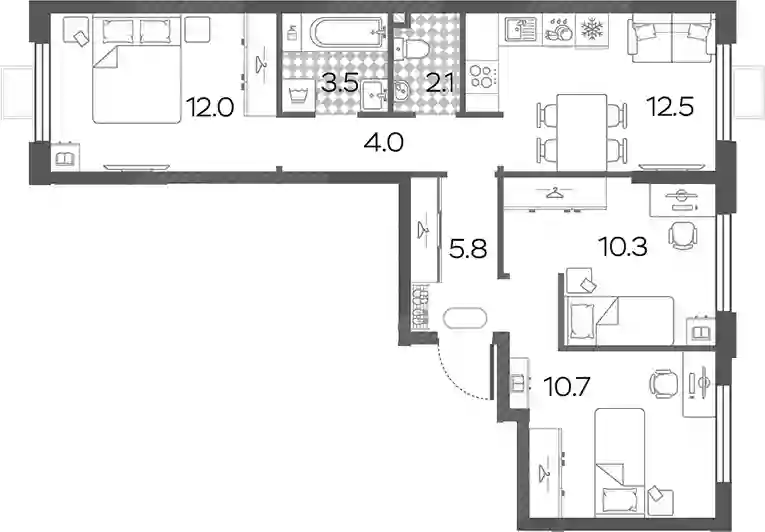 20 335 598 ₽3-к.квартира, 57.3 м², 19 эт.