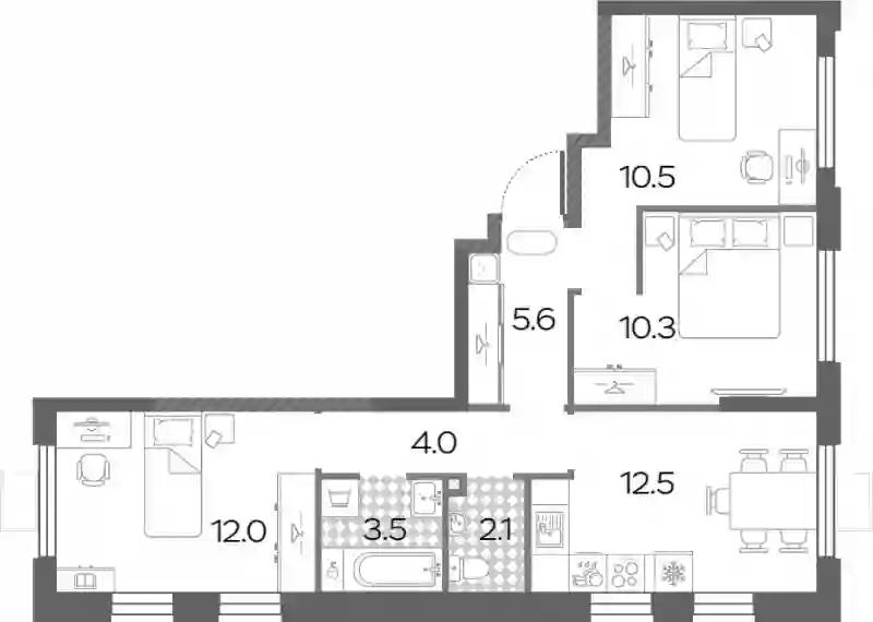 20 397 111 ₽3-к.квартира, 56.6 м², 12 эт.