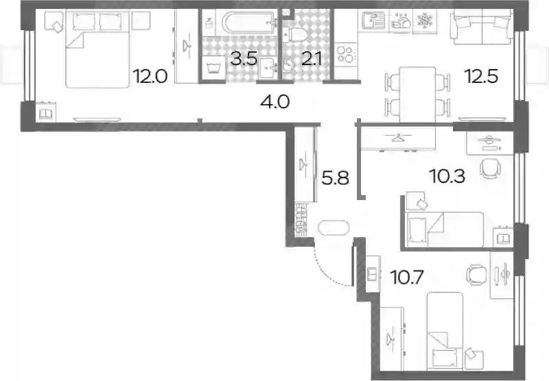 3-к.квартира, 60.9 м², 17 эт. в ЖК Лучи Корпус 3-4