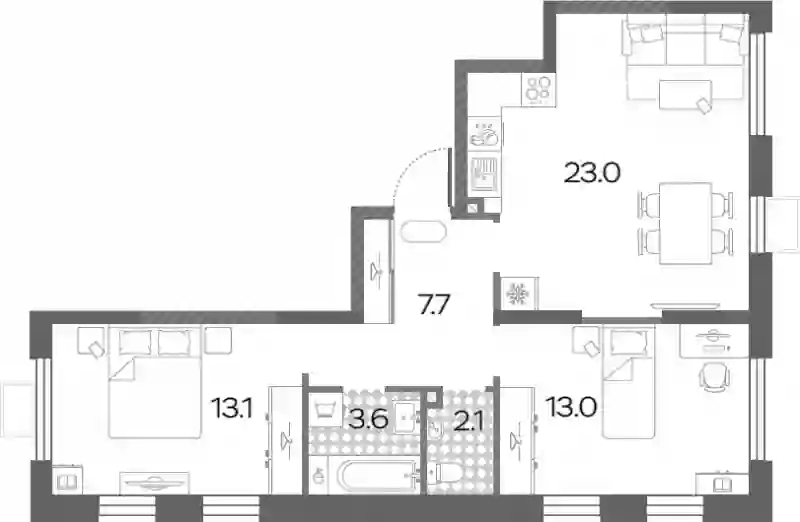 20 654 965 ₽3-к.квартира, 60.9 м², 16 эт.