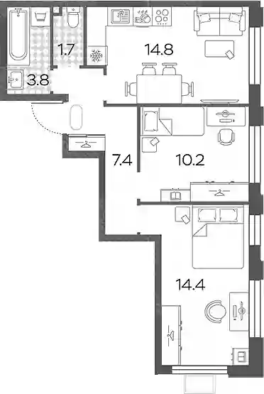 19 778 183 ₽3-к.квартира, 57.3 м², 2 эт.