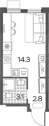 8 423 138 ₽Студия, 20.9 м², 12 эт.