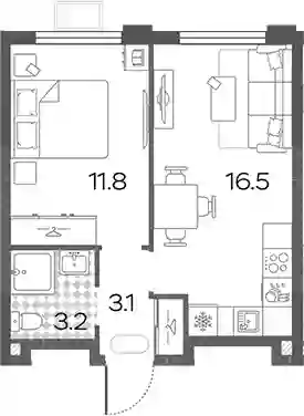 11 457 118 ₽2-к.квартира, 33.8 м², 20 эт.