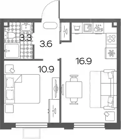 13 203 220 ₽2-к.квартира, 33.6 м², 9 эт.