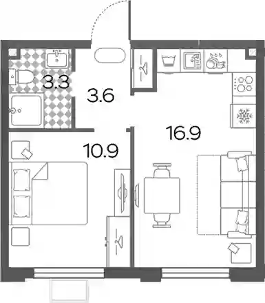 2-к.квартира, 34.7 м², 24 эт. в ЖК Лучи Корпус 6