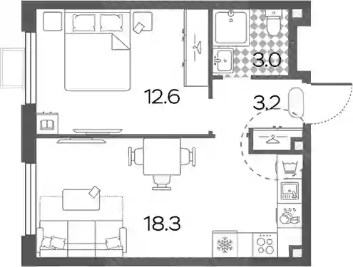 15 756 619 ₽2-к.квартира, 33.6 м², 3 эт.