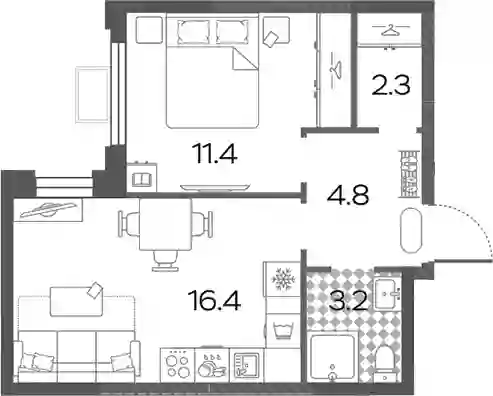 16 224 797 ₽2-к.квартира, 35.3 м², 16 эт.