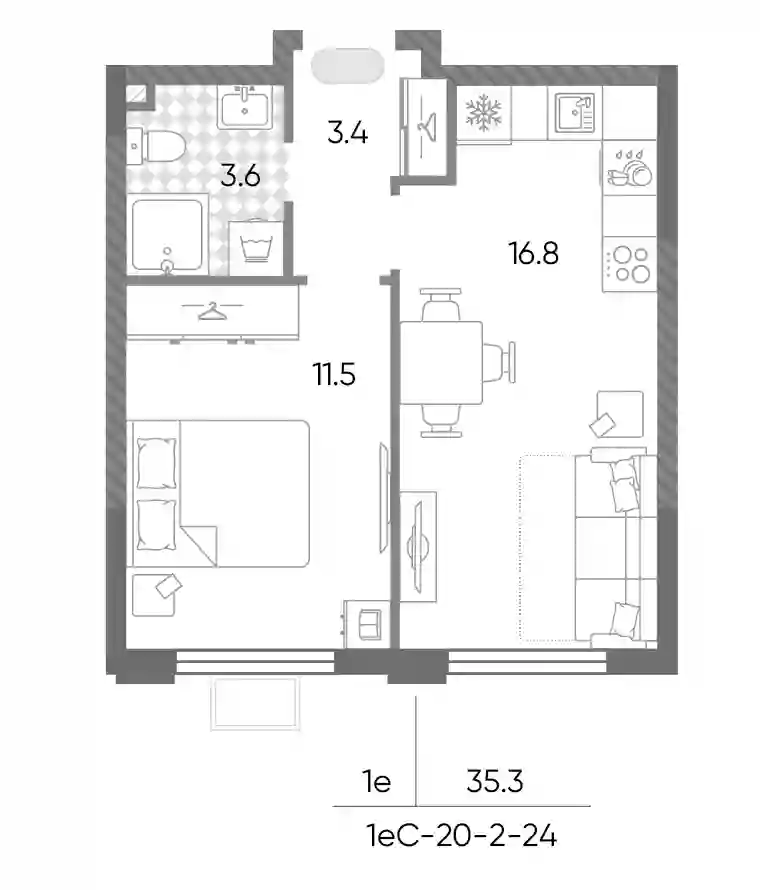 13 451 912 ₽2-к.квартира, 35.3 м², 3 эт.
