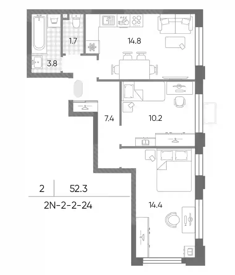 18 814 035 ₽2-к.квартира, 52.3 м², 22 эт.