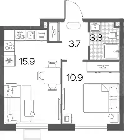 15 949 684 ₽2-к.квартира, 33.6 м², 15 эт.