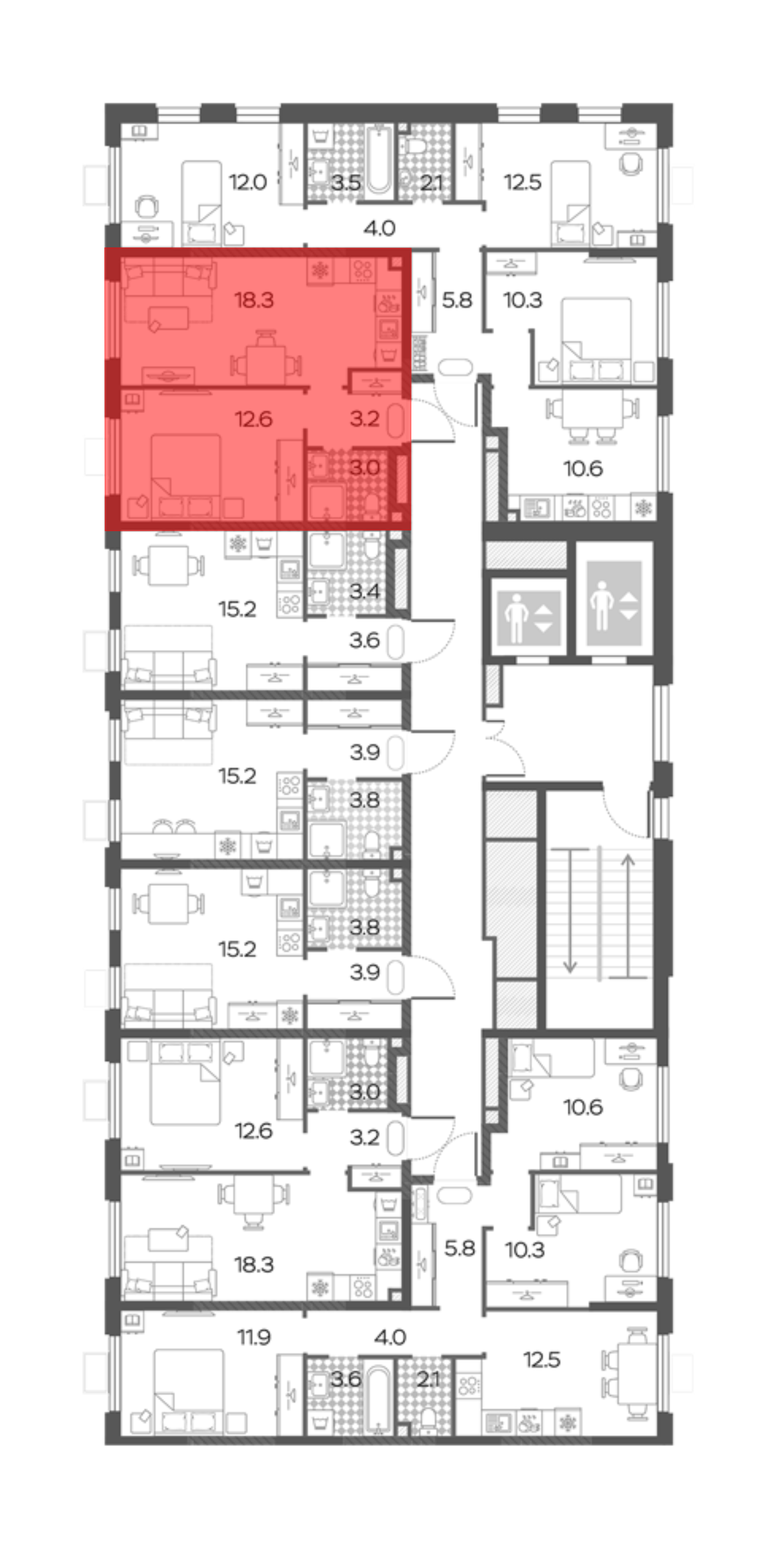 12 596 088 ₽2-к.квартира, 38.1 м², 8 эт.