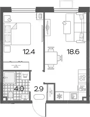 14 993 884 ₽2-к.квартира, 39.5 м², 18 эт.