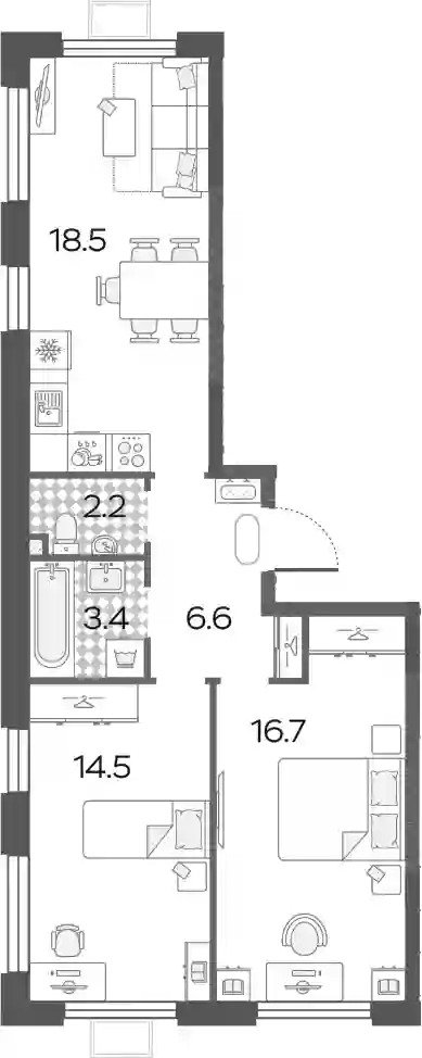 3-к.квартира, 61.9 м², 18 эт. в ЖК Лучи Корпус 8