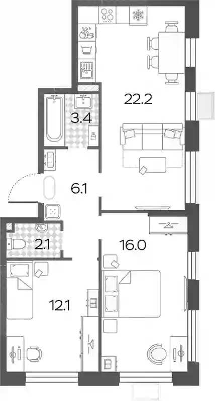 В комплексе «Дмитровское небо»предложено множество планировочных решений: в наличии квартиры, как классического типа, так и европланировки. Сдаются они без стен, высотой потолков 2,7 метра и увеличенными окнами.