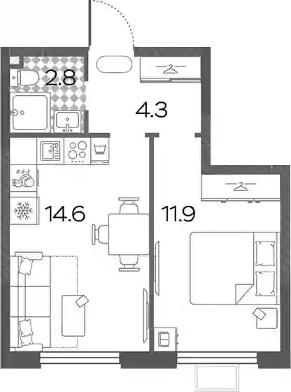 15 949 684 ₽2-к.квартира, 33.6 м², 15 эт.
