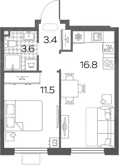 17 259 312 ₽2-к.квартира, 33.6 м², 11 эт.