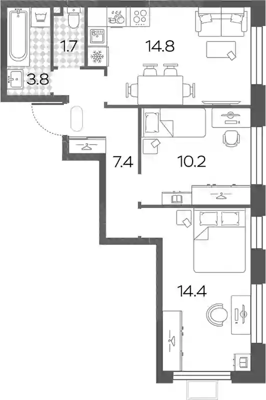 19 815 944 ₽3-к.квартира, 57.3 м², 17 эт.