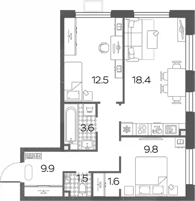 21 786 707 ₽3-к.квартира, 60.8 м², 9 эт.