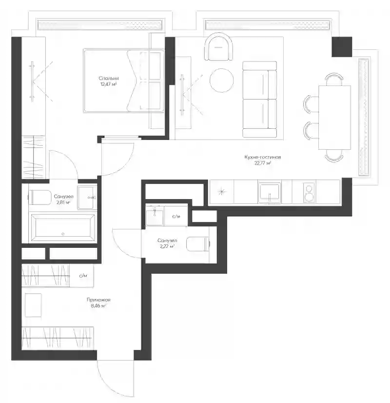 33 668 666 ₽1-к.квартира, 46.92 м², 52 эт.