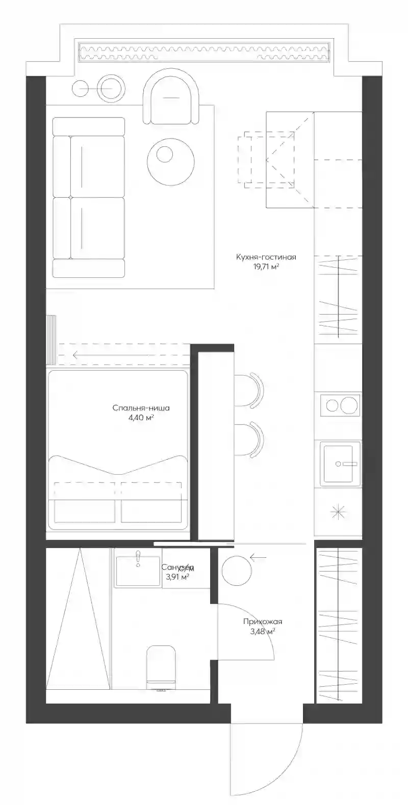 Студия, 31.5 м², 6 эт. в ЖК Lunar Корпус C
