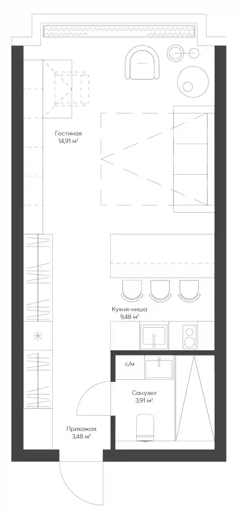 Студия, 31.78 м², 8 эт. в ЖК Lunar Корпус C