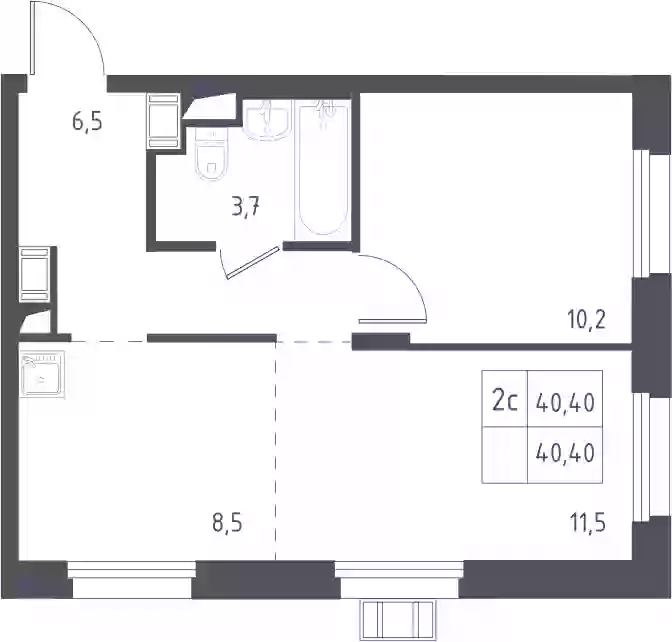 2-к.квартира, 40.4 м², 16 эт. в ЖК Люберцы Корпус 67