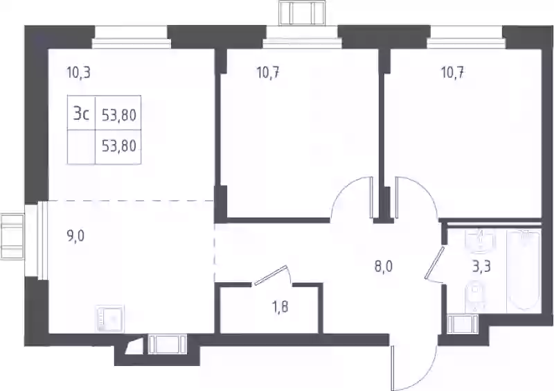 3-к.квартира, 53.8 м², 4 эт. в ЖК Люберцы Корпус 67
