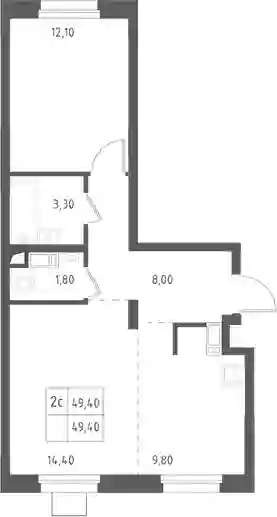 2-к.квартира, 49.4 м², 17 эт. в ЖК Люберцы Корпус 70