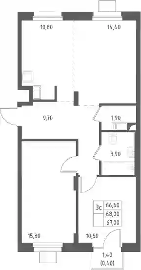 3-к.квартира, 68.1 м², 7 эт. в ЖК Люберцы Корпус 70