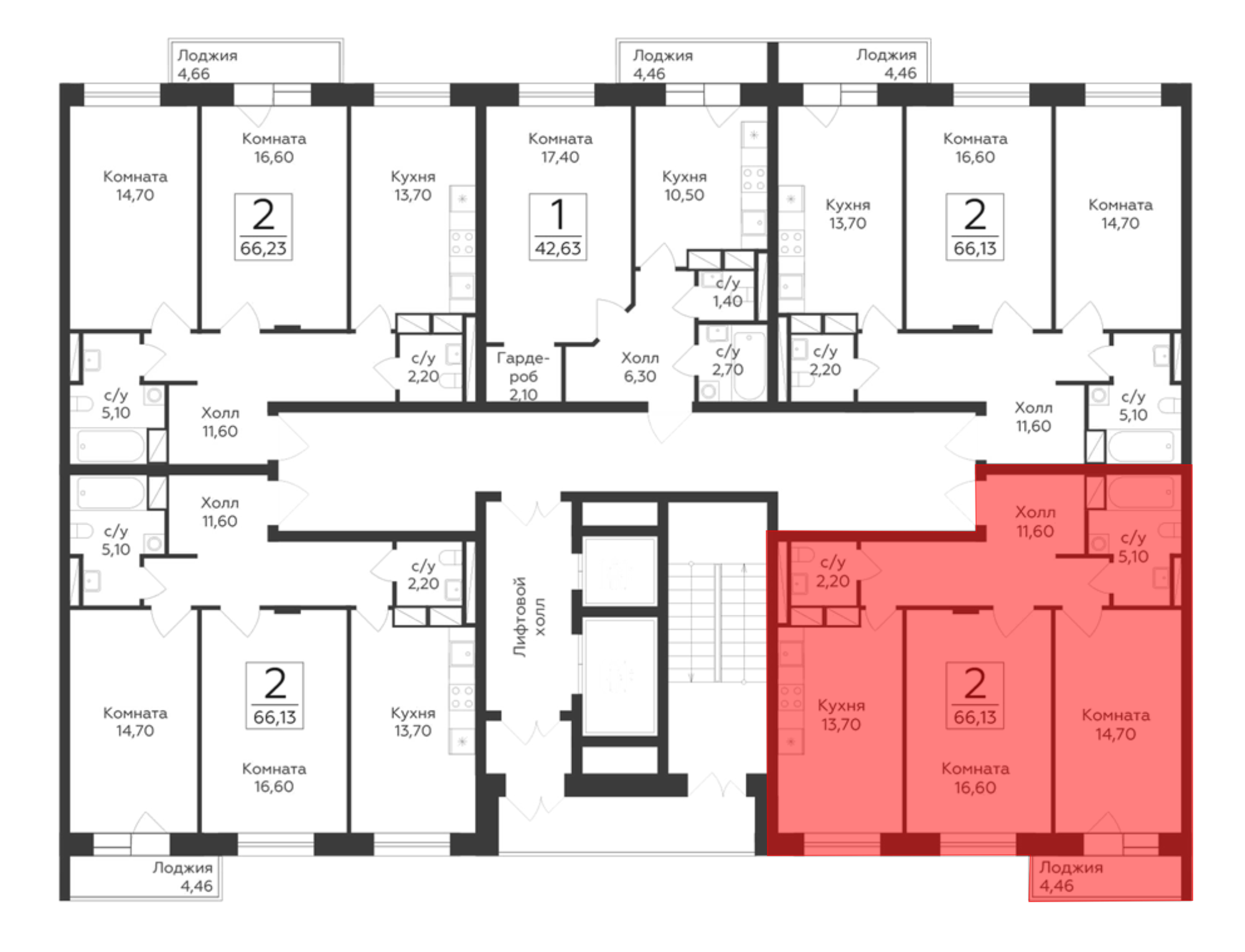 7 743 823 ₽2-к.квартира, 63.9 м², 13 эт.