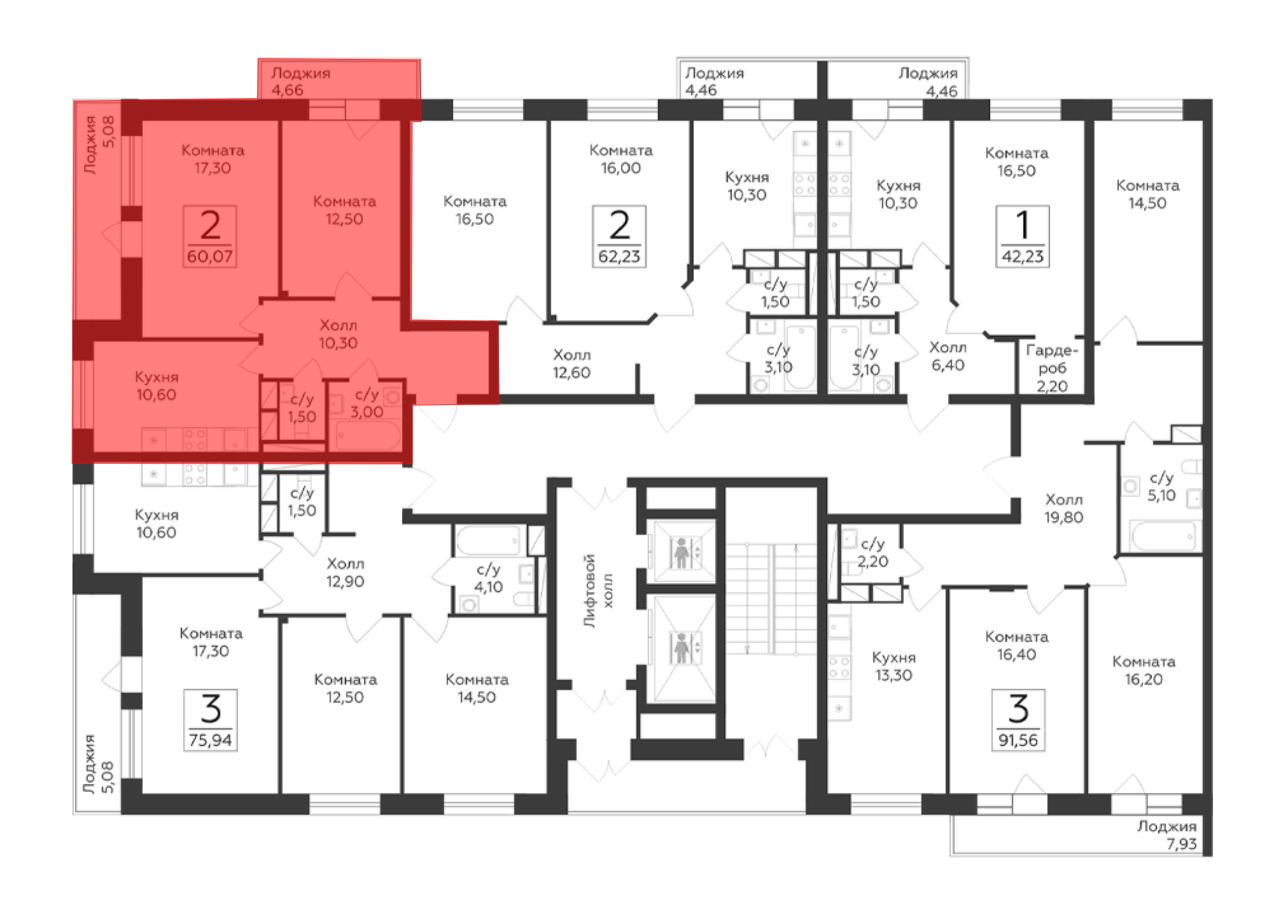 7 956 900 ₽2-к.квартира, 56.4 м², 10 эт.