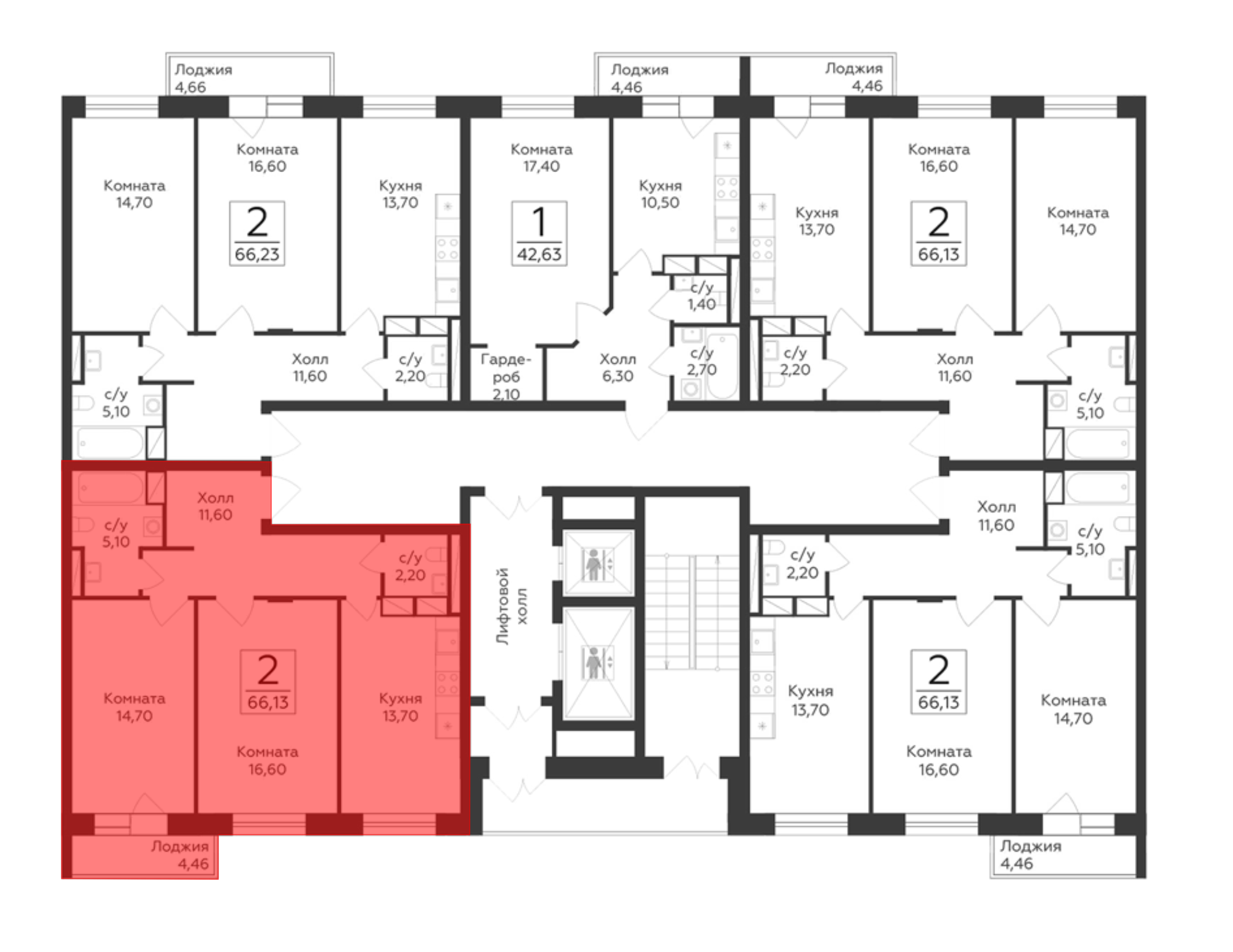 8 128 700 ₽2-к.квартира, 63.9 м², 10 эт.