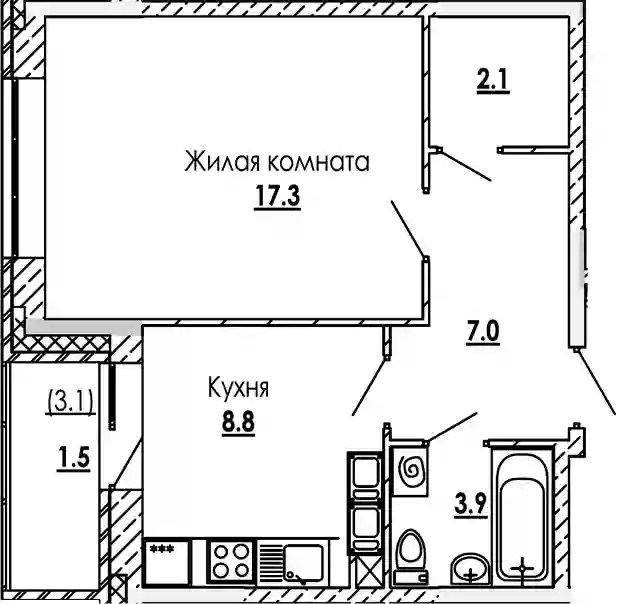 5 707 920 ₽1-к.квартира, 39.3 м², 7 эт.