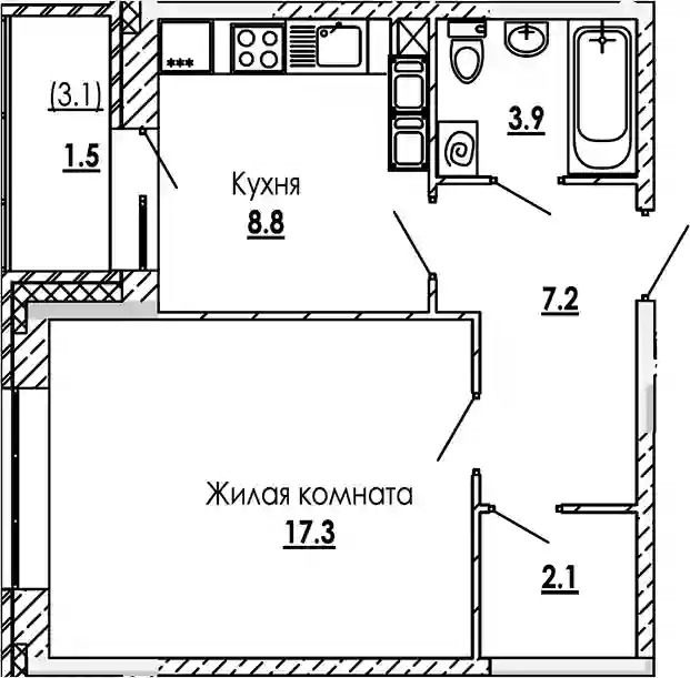 5 005 200 ₽1-к.квартира, 38.8 м², 7 эт.