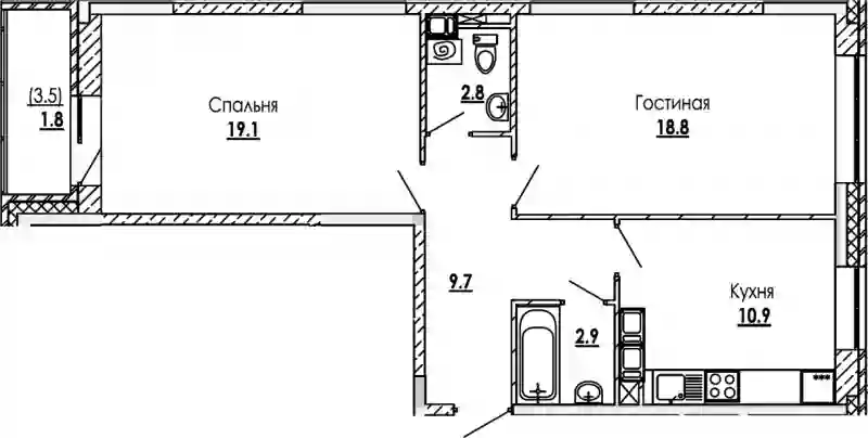 7 590 000 ₽2-к.квартира, 58.4 м², 9 эт.