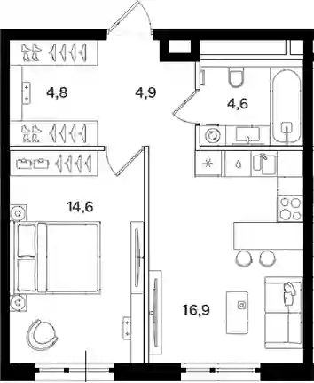 24 113 040 ₽1-к.квартира, 43.4 м², 16 эт.