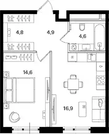 1-к.квартира, 45.8 м², 5 эт. в ЖК Мангазея на Речном Корпус 8.1