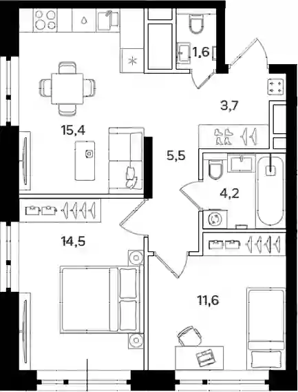 2-к.квартира, 56.5 м², 23 эт. в ЖК Мангазея на Речном Корпус 8.2