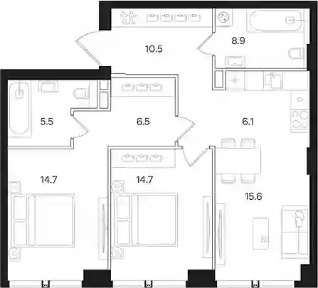 В проекте представлен широкий выбор планировок: от классических квартир до европланировок. Кроме того, есть уникальные варианты: квартиры с угловыми окнами, квартиры с террасами, с мастер-спальней и собственной ванной комнатой, а также двухуровневые пентхаусы. Во всех квартирах установлены широкоформатные окна без подоконников. Высота потолков варьируется от 3,1 до 3,32 метра, а в двухуровневых квартирах составляет 6,84 метра. Все квартиры сдаются без отделки.