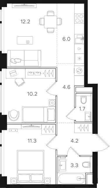 3-к.квартира, 53.5 м², 13 эт. в ЖК Мангазея в Богородском Корпус 1
